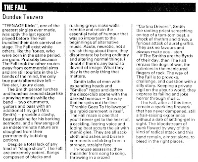As for the Fall - that album isnt everyones cup of tea but it is certainly one that changed my life. Be keen to hear feedback on it. I subsequently went on to meet Mark and even play on certain tracks (much much later) but like most he sacked me and started again. He was a genius but a drunk and sometimes brutal person.